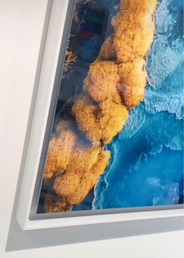 En laissant un espace de 3 cm entre l'œuvre et le cadre, la caisse américaine crée un effet visuel captivant, accentuant la singularité de la création. Cette subtile séparation permet à l'œuvre de respirer, évitant toute distraction inutile et focalisant l'attention sur l'essentiel.